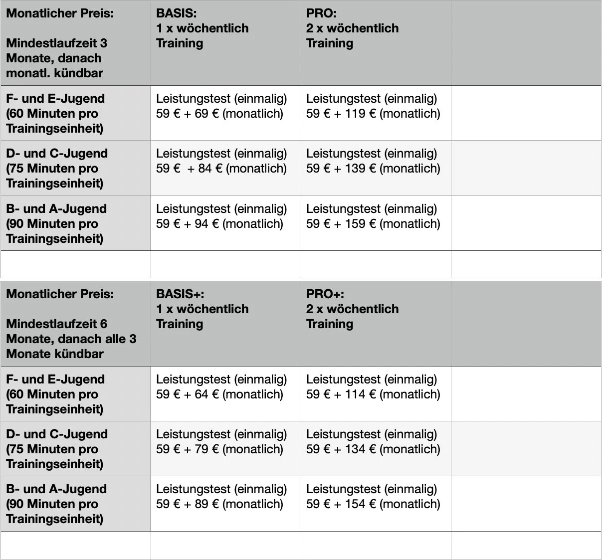 Bewegung und Spielverständnis. Das Training ist leistungsangepasst aufgebaut und ergänzt das Vereinstraining sinnvoll.